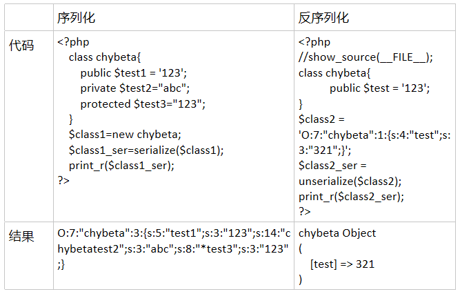 为了能够unserialize()一个对象,这个对象的类必须已经定义过。如果序列化类A的一个对象,将会返回一个跟类A相关,而且包含了对象所有变量值的字符串。如果要想在另外一个文件中解序列化一个对象,这个对象的类必须在解序列化之前定义,可以通过包含一个该类的文件或使用函数spl_autoload_register()来实现。