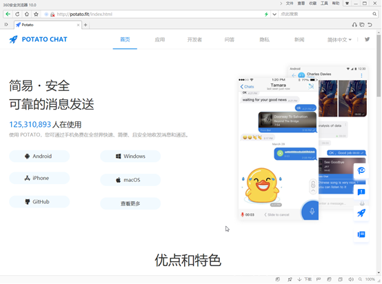 从360安全大脑追踪到的细节来看,“看门狗”团伙近乎完全地复制potato官方网站(hxxps://potato.im/),制作出了自己的假网站(hxxp://potato.fit/index.html),且在页面中,除了动态变化的使用人数和被替换了的windows版下载链接外,几乎与官网毫无区别,极大地提高了中招率。