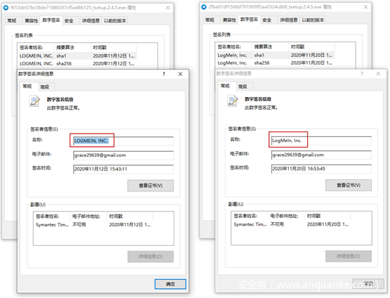 在“看门狗”团伙制作的假网站,点击windows版下载后的安装程序,是签名无效的程序,但由于高隐蔽性,常常难以察觉。官方网站安装程序与“看门狗”团伙制作版对比如下图: