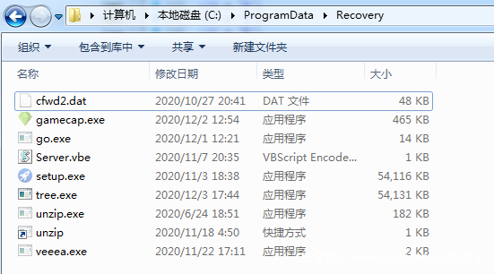 此文件解压缩出来的文件都放在C:\ProgramData\Recovery。