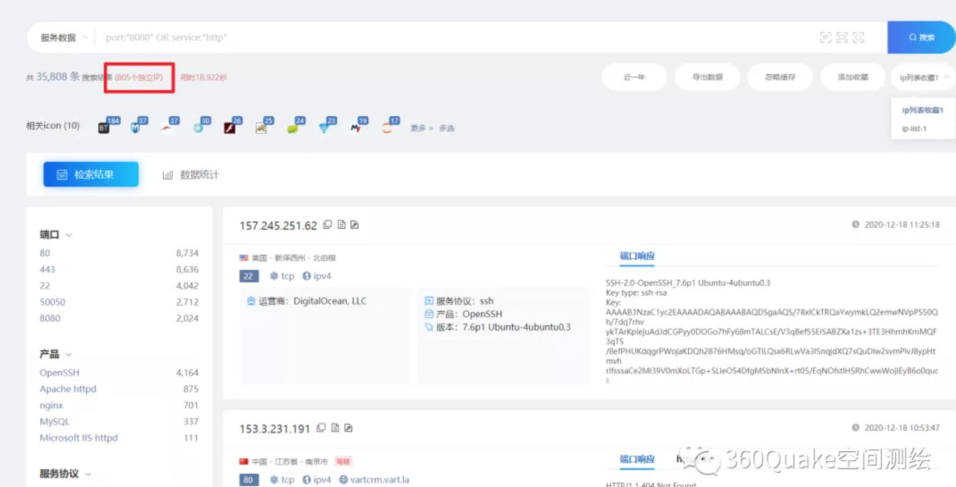 同时在检索结果页右上角,可以随时选取我们之前收藏过的IP列表,非常方便。