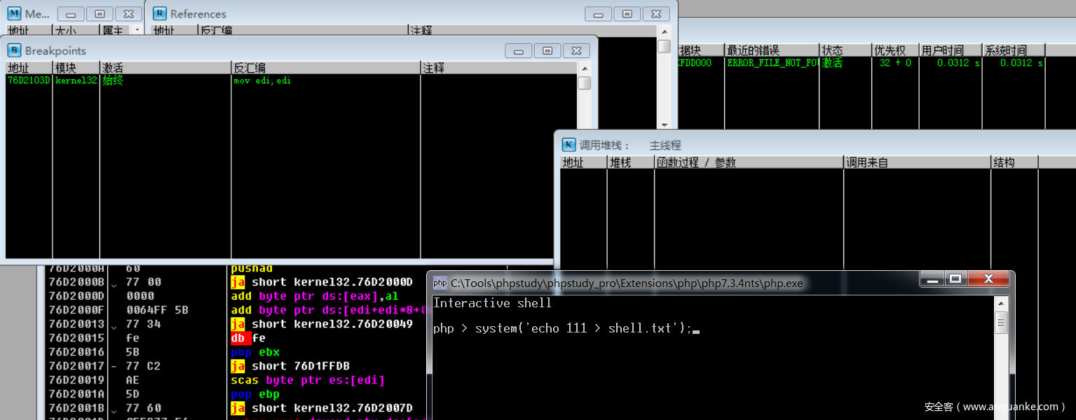 针对Windows平台下,PHP命令执行函数的底层原理分析。