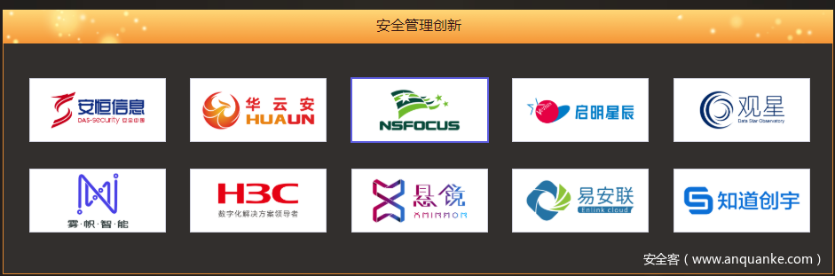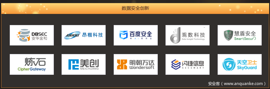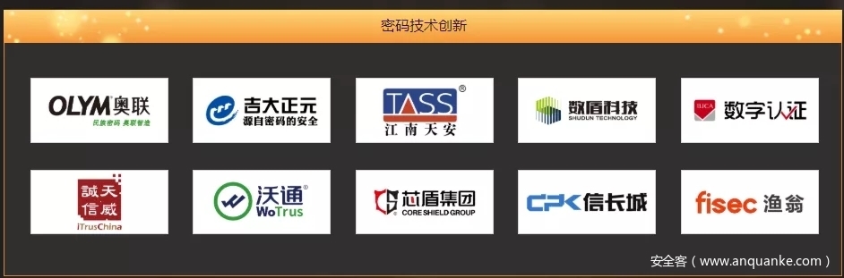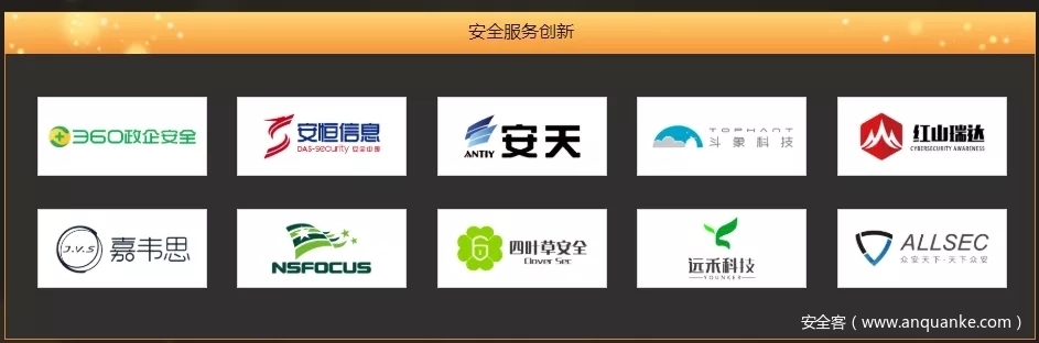 其中包括分别代表:密码技术创新、仿真技术创新、数据安全创新、安全管理创新、物联网安全创新、攻防技术创新、云安全创新、安全服务创新、访问控制创新9大维度的10强企业。