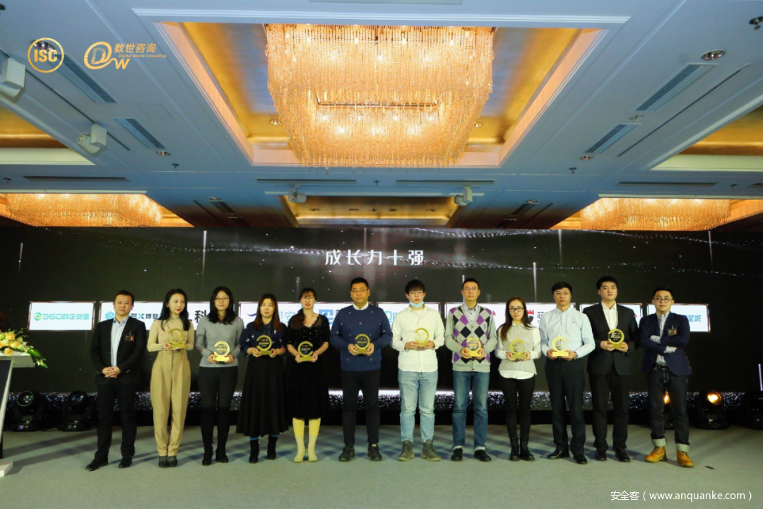 同时,根据融资、收入、估值、收入年增长率等维度,典礼还揭晓了中国最具发展潜力的年度成长力十强网络安全企业,他们分别是:360政企安全集团、科来、博智安全、观安信息、微步在线、永信至诚、青藤云、亚信安全、美创科技、芯盾时代。