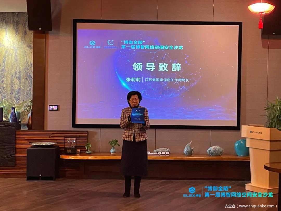江苏省国家保密工作局局长张莉莉,博智安全董事长傅涛出席沙龙并致辞,国家工业信息安全发展研究中心副主任何小龙远程致辞。