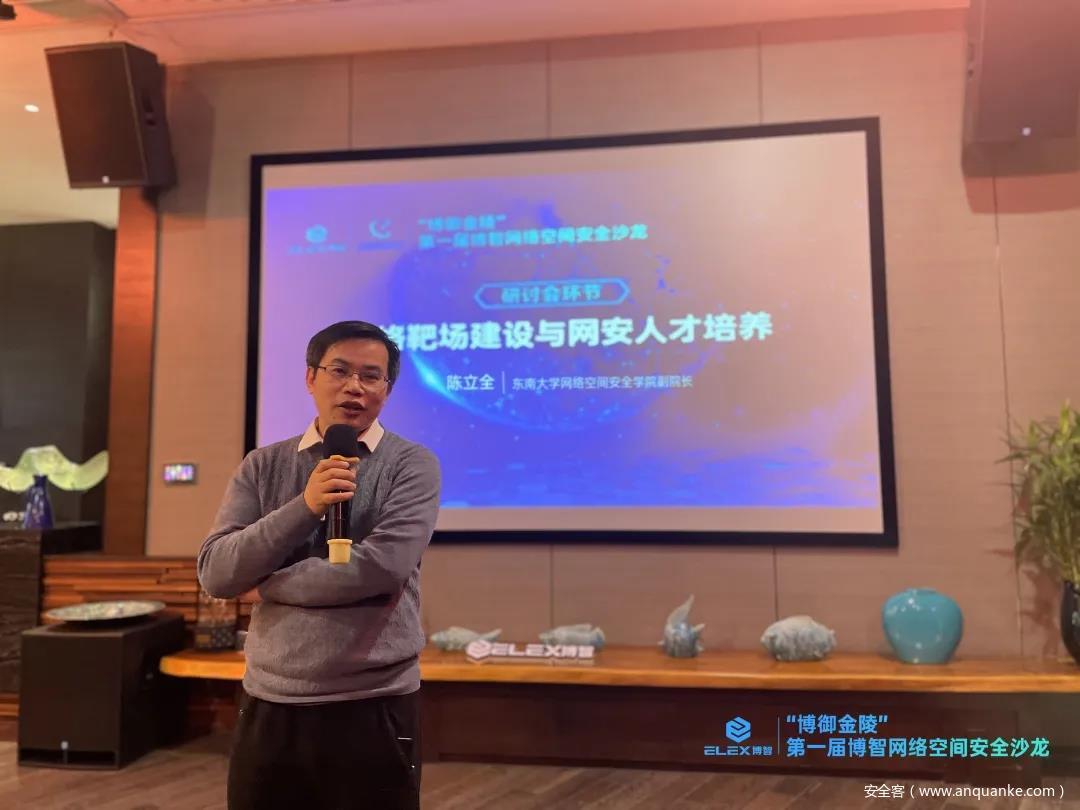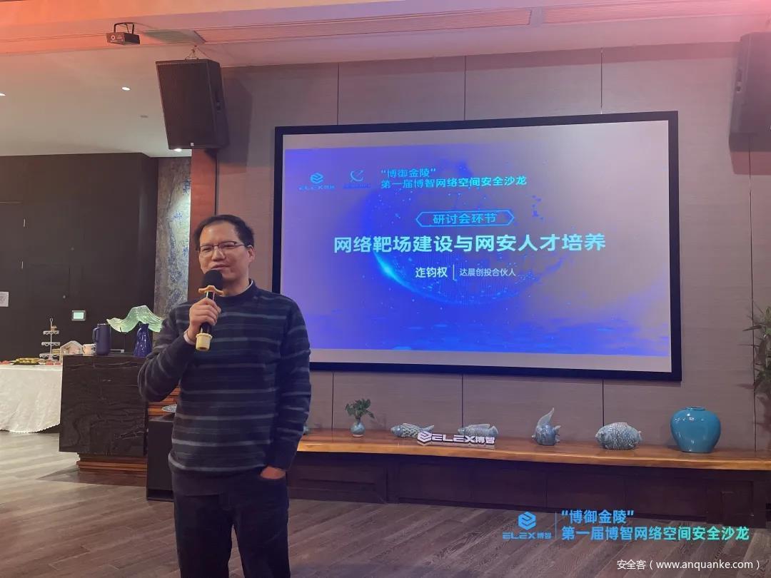 主题研讨会环节,江苏省工业和信息化厅信息化发展处副处长金雷、东南大学网络空间安全学院副院长陈立全、达晨创投合伙人迮钧权、江苏省信息网络安全协会副理事长赵和平分别就网络靶场建设与网安人才培养发表感想。