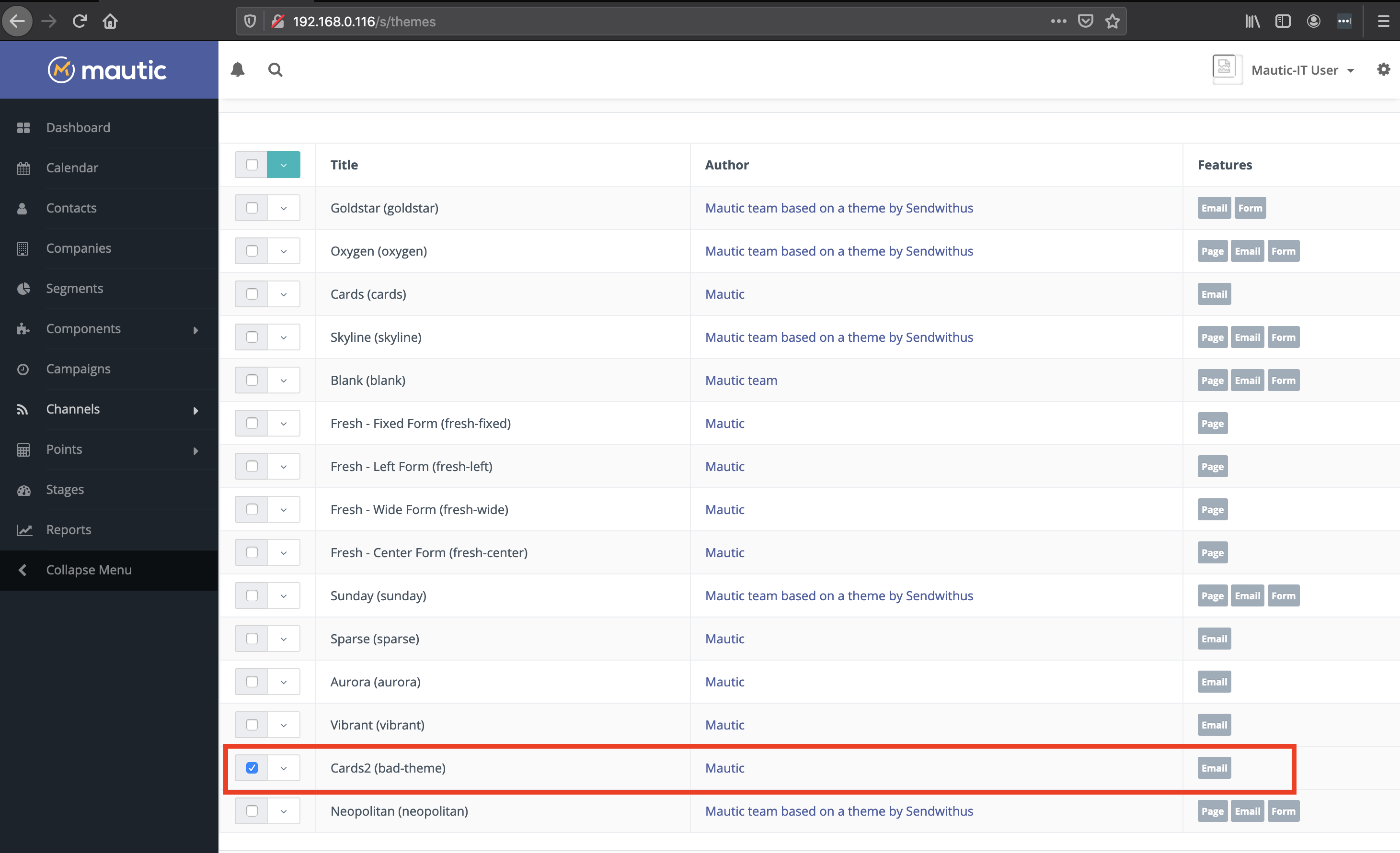 当管理员访问一个复杂的Web应用程序时,通常会涉及到在托管应用程序的服务器上获得远程代码执行权限。对于Mautic,我们发现可以通过上传恶意的自定义主题来获得远程代码执行权限。这本身不是一个漏洞,而是应用程序中的一个可能被攻击者利用的功能,这也是很多内容管理系统中常见的攻击向量。