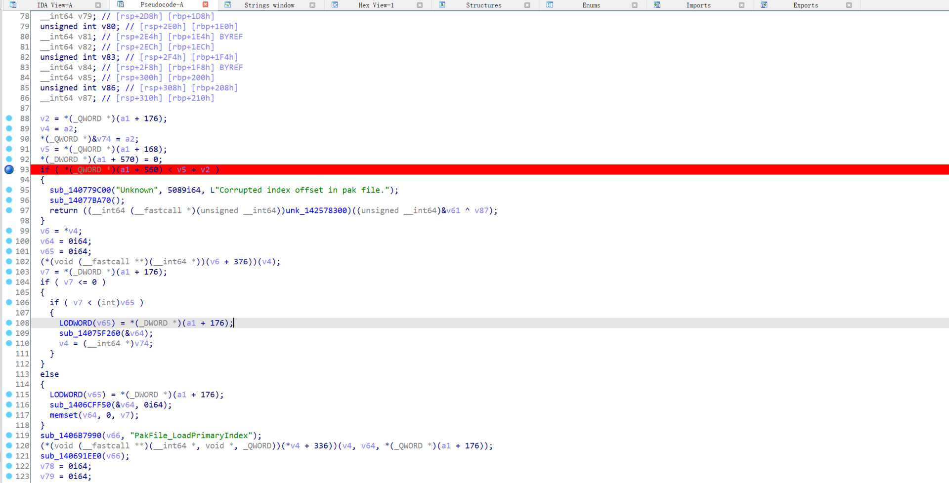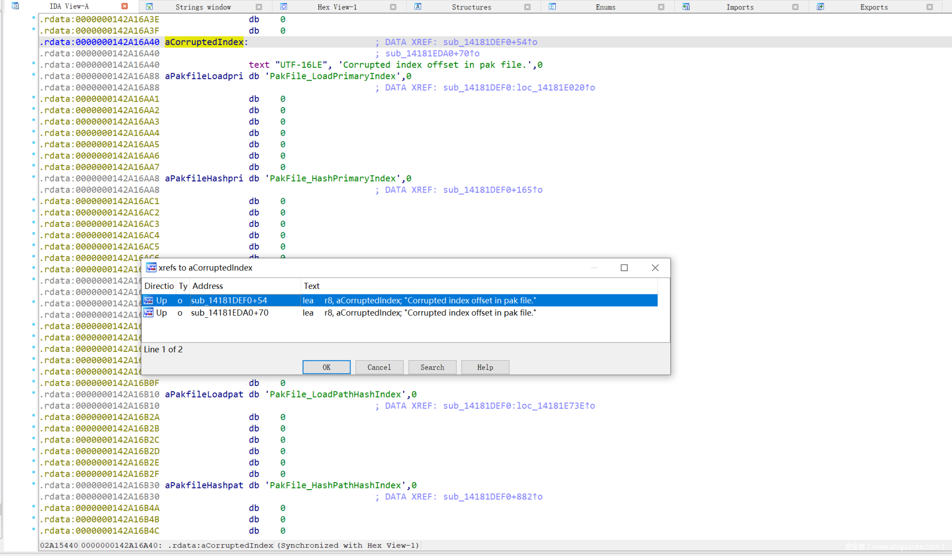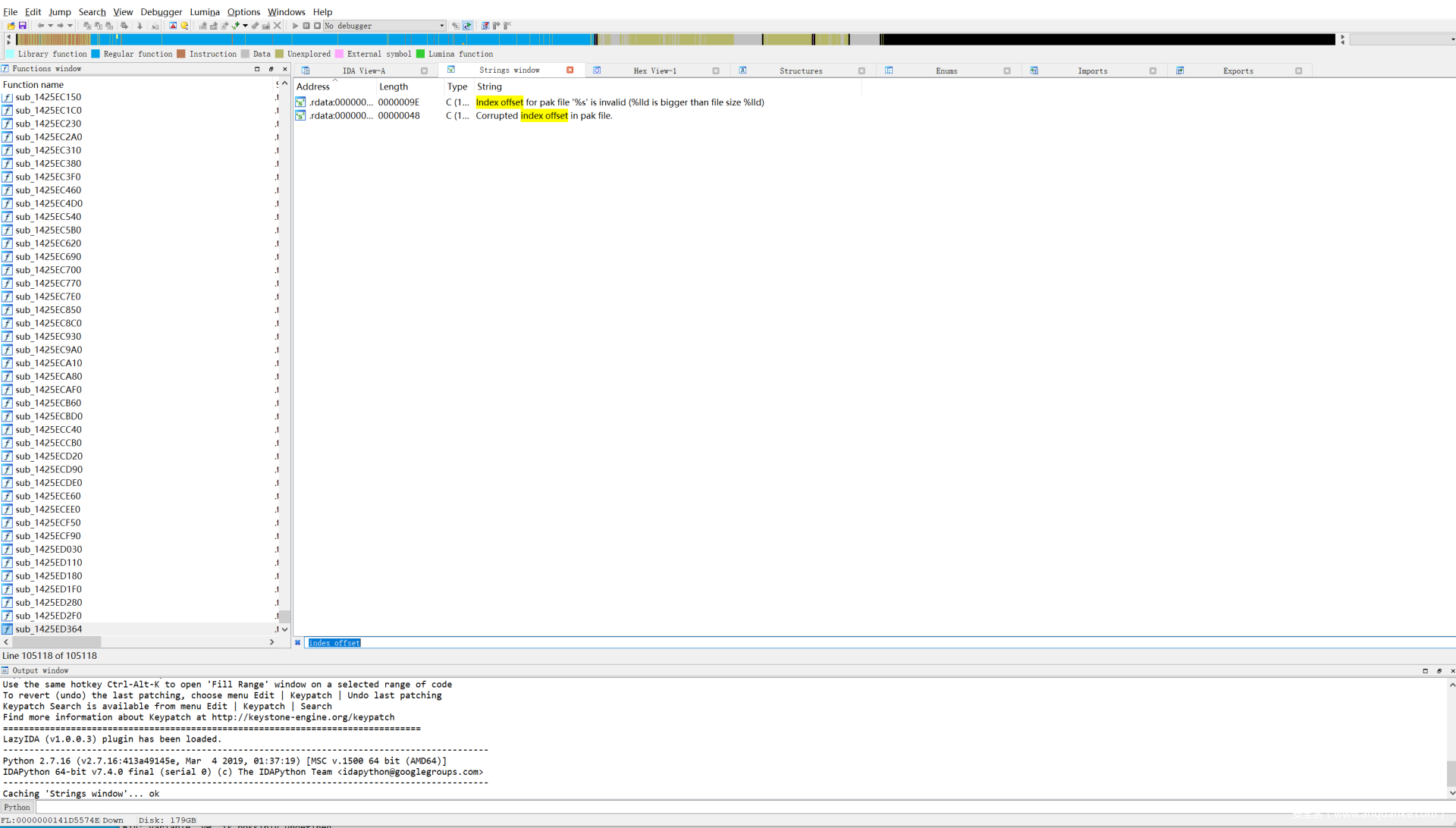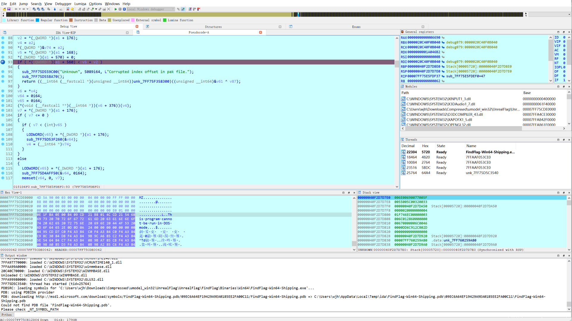 用IDA载入关键文件FindFlag-Win64-Shipping.exe,查找字符串关键词index offset(时间有点久)