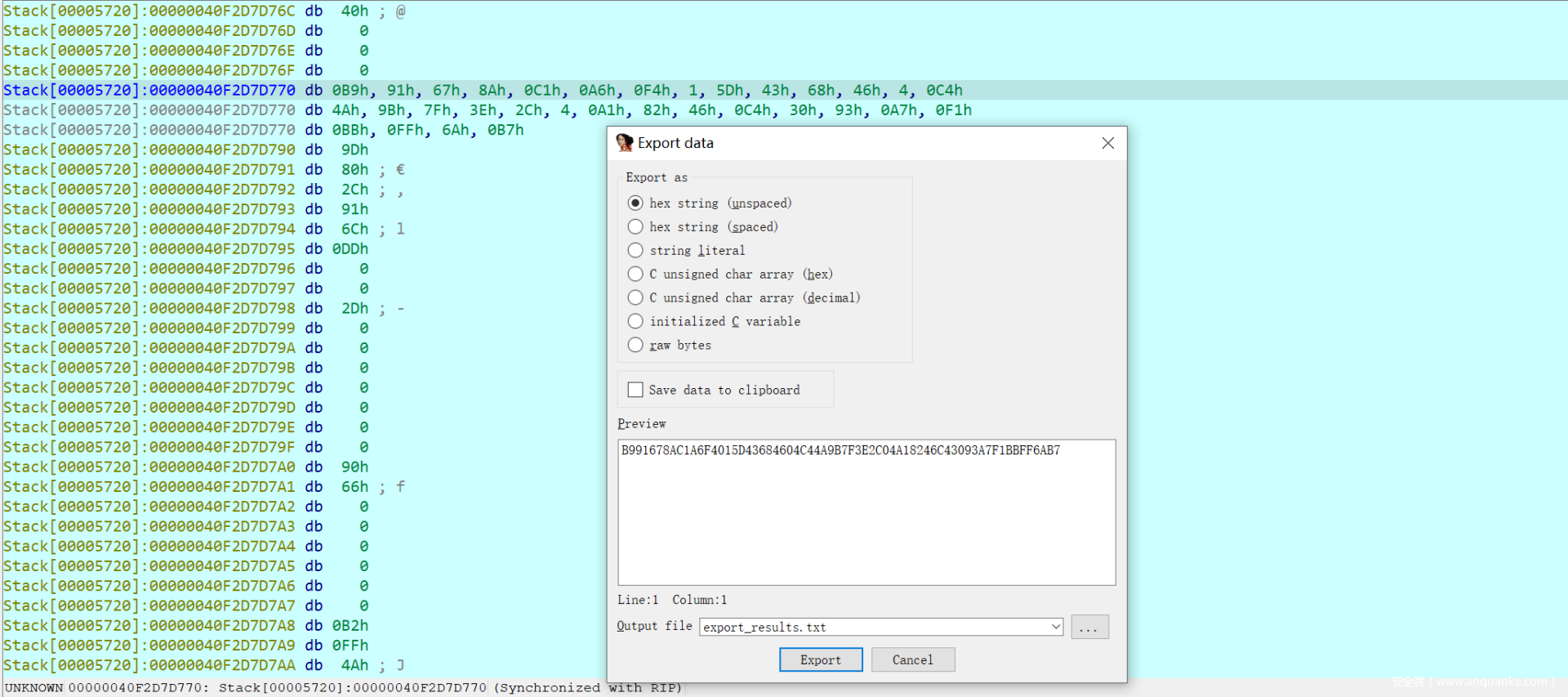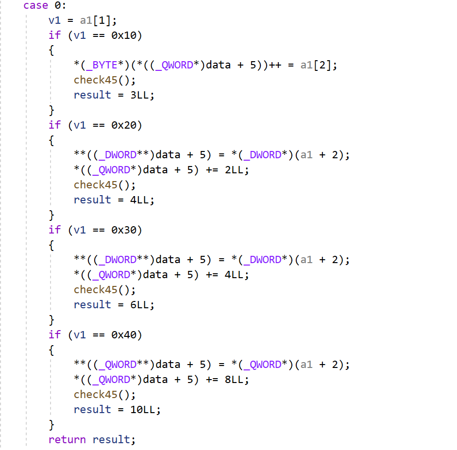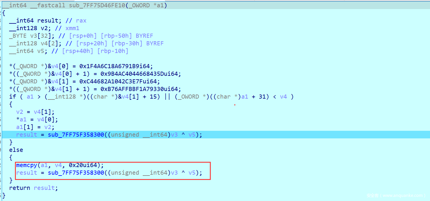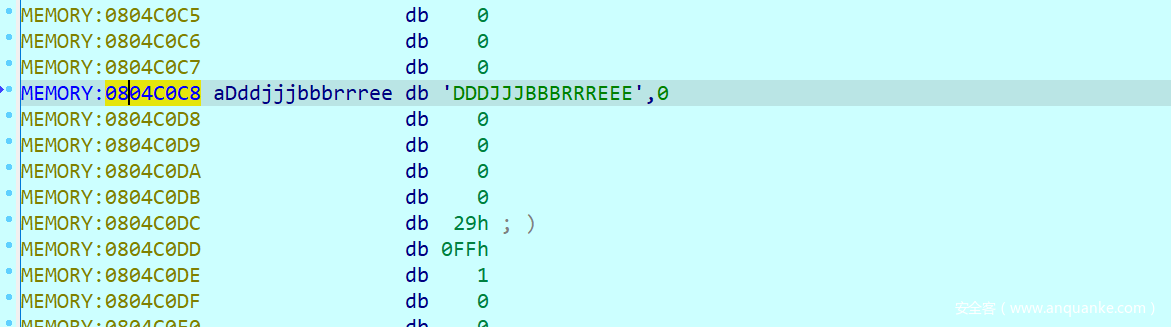 发现这里有个memcpy,而且copy的size也是0x20,虽然这部分没有走到,不过我大胆地猜测这里应该就是用于前面异常报错的部分,所以查看对应的a1内容,先按*设置为数组