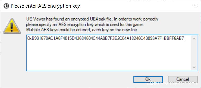 在之前的教程里面用的工具在这道题里面似乎不行,所以我一直没搞清楚要用什么来解包,然后查看umodel的官网,本来想找找怎么输入AES的格式是怎么样的,也没有找到,最后出题人告诉我AES输入的格式是前导0x的16进制字符串(其他软件都是base64)