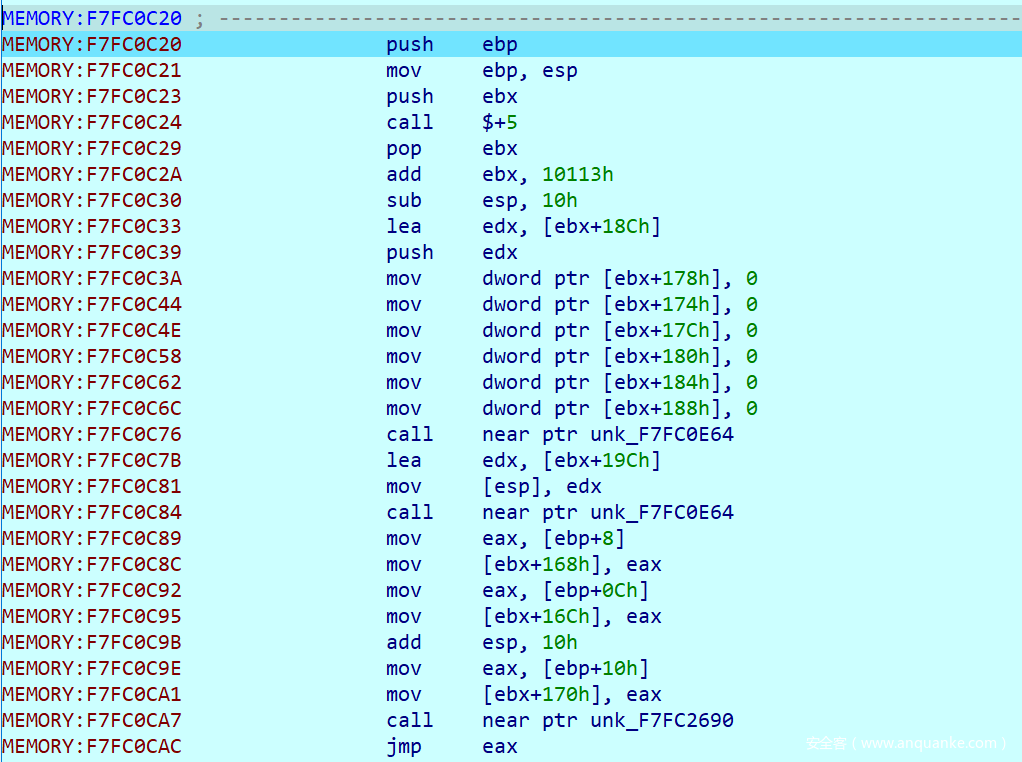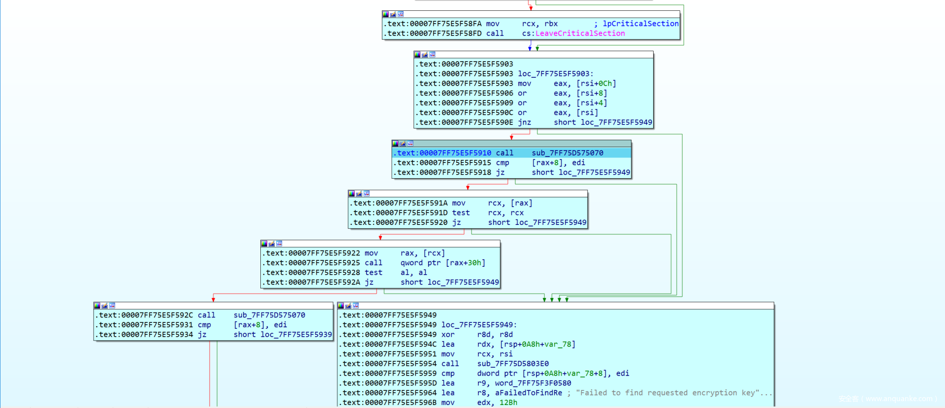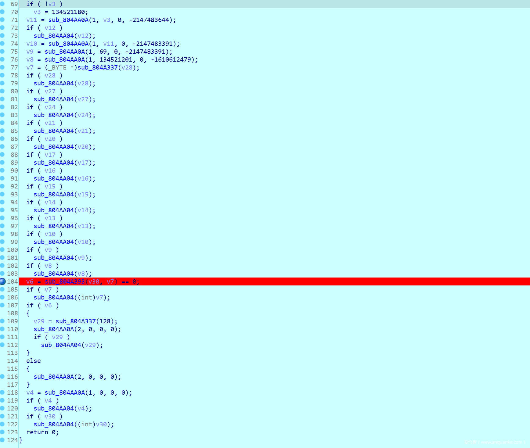 我们可以走到他附近看看,由于这块的伪代码效果不是很好,我们直接去汇编看,每一个调用函数都进去看看
