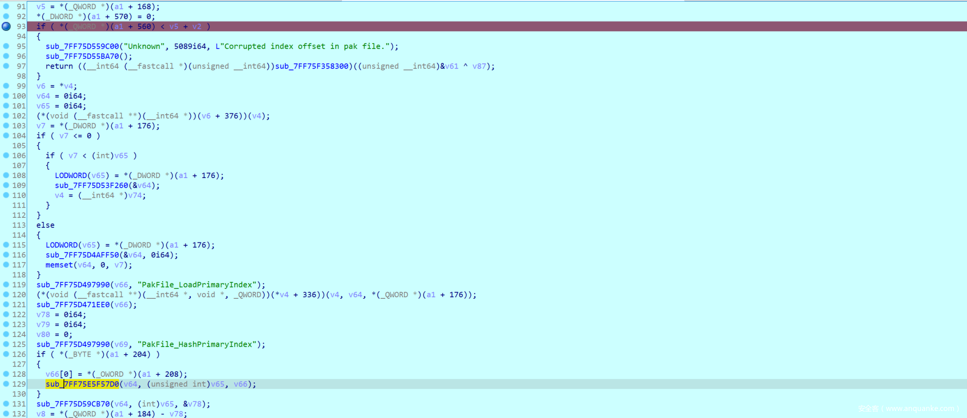 发现v6就在我下的断点那一行赋值了(红色那行),点进去那个调用的函数