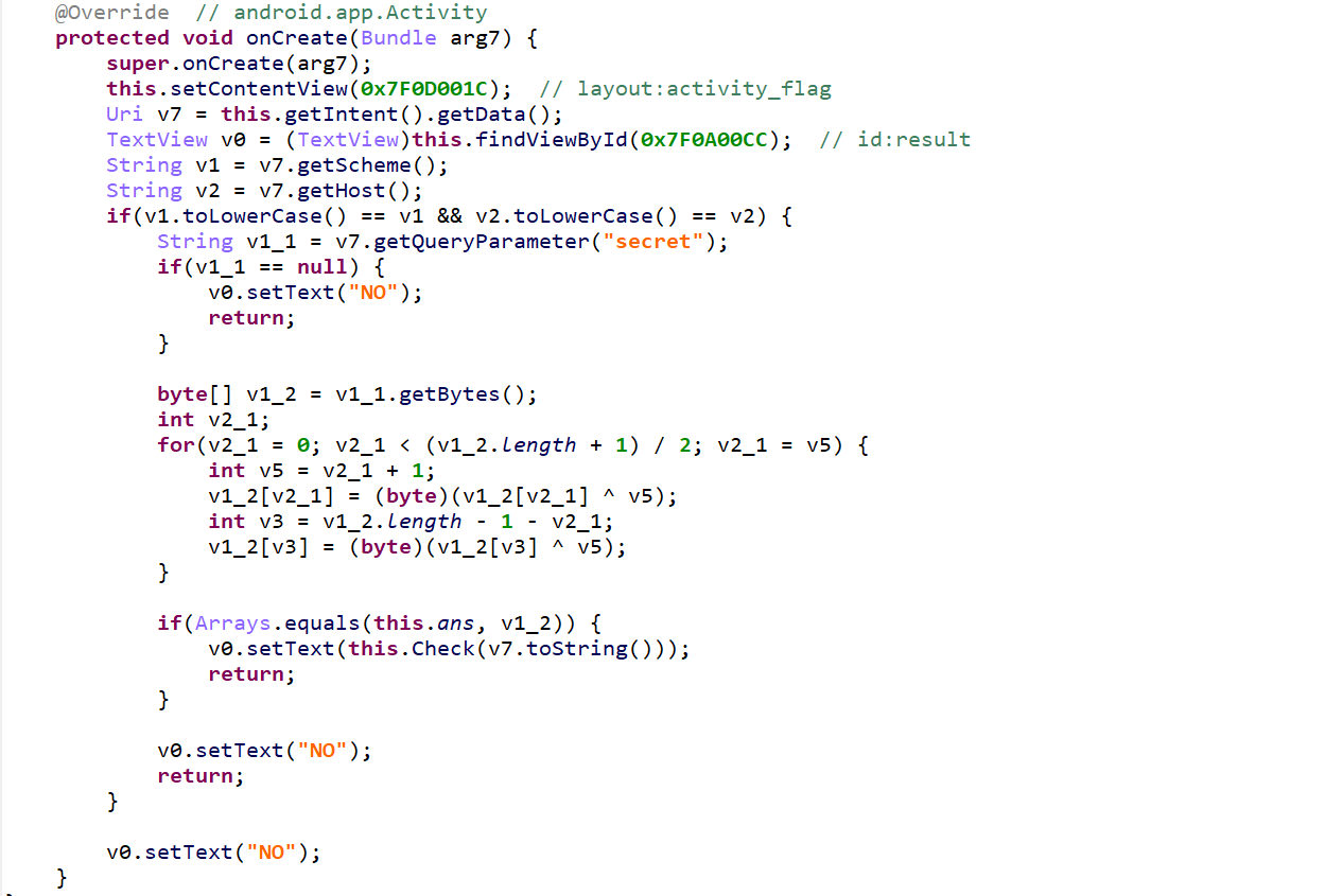 如果进入下面的分支就会输出NONONO,所以猜测上面的分支就是会输出正确的flag。