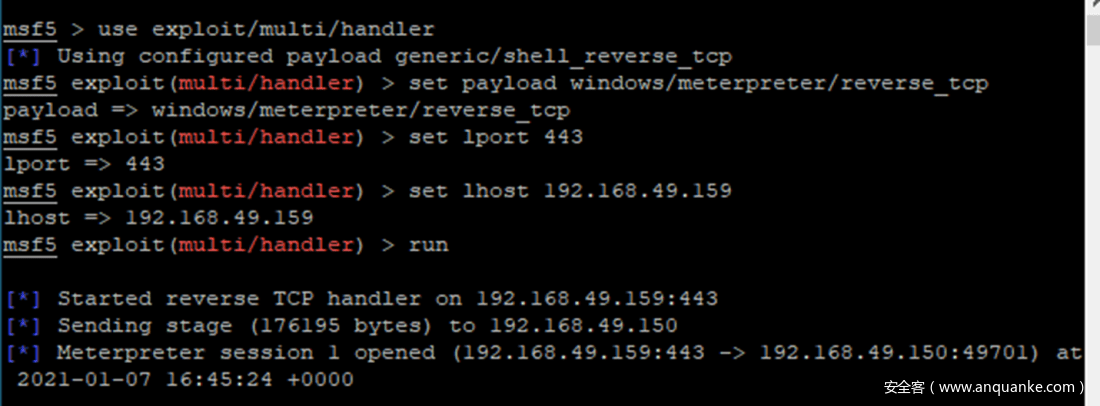 此时,shellcode已经运行,在这个实例中会建立一个Meterpreter会话,但很明显这里可以执行任意的shellcode: