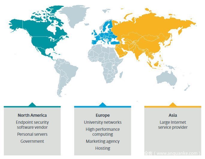 在针对这一新的恶意软件威胁创建了身份指纹之后,来自网络安全公司ESET的安全研究人员进行了一次互联网范围的大规模扫描,并尝试去寻找受到恶意软件Kobalos攻击的目标用户。研究人员发现,很多受到攻击的目标系统都是一些学术和研究部门的超级计算机和服务器。除此之外,还有北美的一家未公开的软件安全供应商、亚洲一家大型互联网服务提供商、营销机构和主机提供商也成为了该恶意软件的受害者。