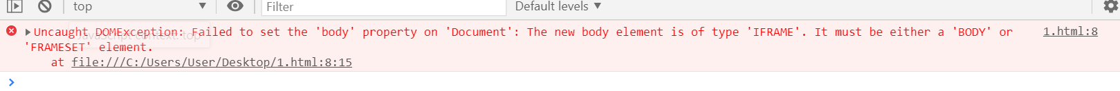 上图错误原因为把Iframe类型插入到了document.body,而正确应该插入BODY类型或者FRAMEST类型。或采用下图所示方式给body插入元素。