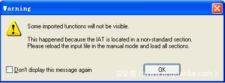 下面尝试使用IDA对这个加了壳的程序进行分析,IDA弹出这样一个警告提示,如图所示: