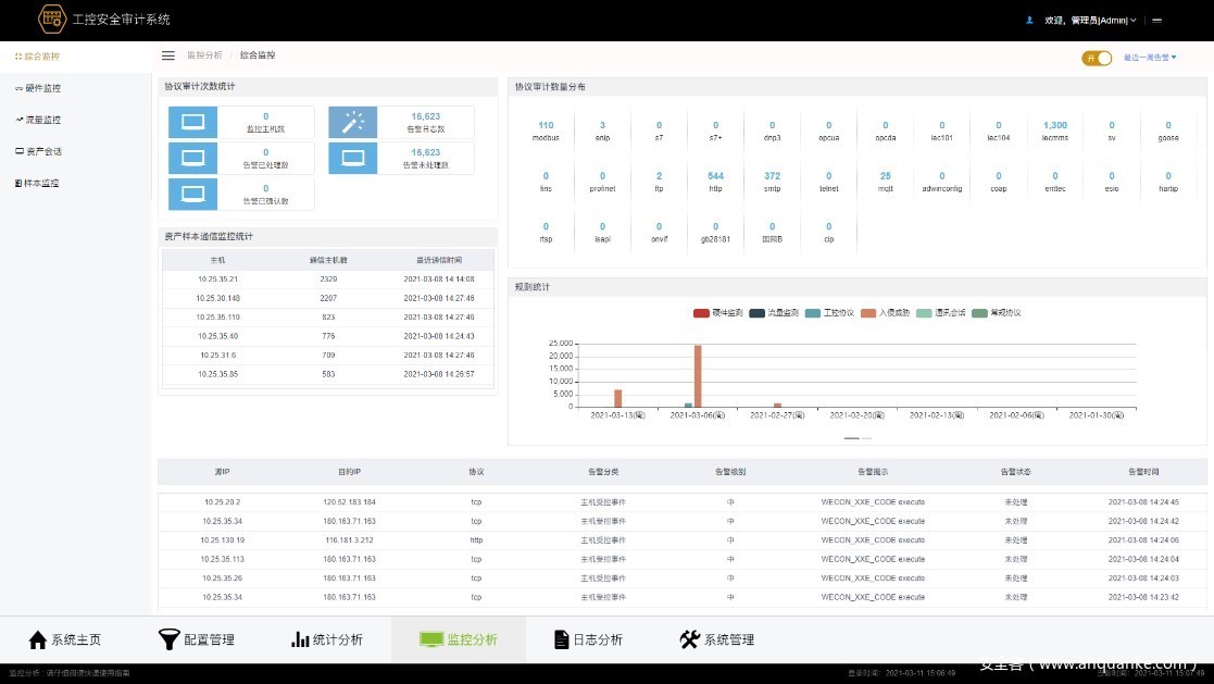 2.业务零影响: 系统旁路部署,镜像获取网络流量,工控业务实时性不产生影响。