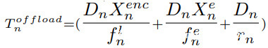 -任务概况:该模块通过移动性能测量工具,收集设备执行数据任务时的能耗(E)、处理时间(T)、内存使用量(M)等信息。因此,一个大小为Dn(以比特为单位)的任务配置文件可以被表述为一个变量元组[Dn,En,Tn,Mn],然后存储在MD上创建的数据库中,以支持卸载决策。