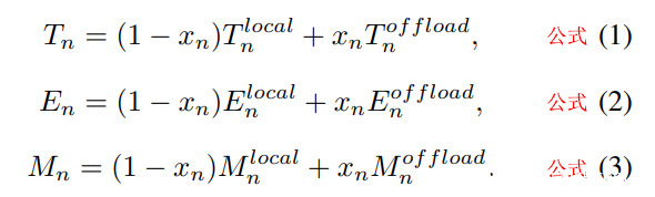 -决策装置:该模块接收配置文件模块收集的任务配置文件信息,以做出卸载决策。与[17]、[18]类似,我们采用整数线性编程模型来开发MD的决策算法。通过使用配置文件信息,算法分析并做出本地执行或卸载到MEC服务器的决策 。主要目标是为每个任务确定一个最优的计算决策,使计算延迟、能耗和内存使用量最小化。