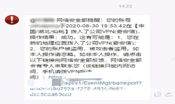 为此,我们建立了异常行为一键推送反馈体系。同事们在自己的账号/办公机出现异常行为的时候,可以第一时间在内部IM上收到网络安全部自动推送的通知,比如你的终端插入了新的U盘,你的VPN在异地登陆,你的账号在内网搜索了敏感信息。假如用户确认不是本人操作,或者感觉有异常,他只需要点击IM通知中的链接,网络安全部运营中心就会收到一条事件工单,由一线运营人员去进一步跟进处理。