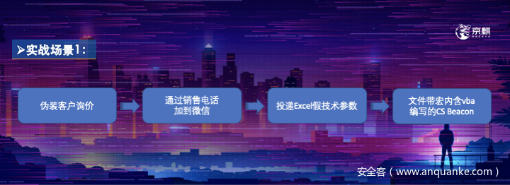 在这个案例里,攻击者在我们官网上收集了我们的销售渠道,伪装自己是一个大学教授,想来采购我们公司的安全系统。攻击者为了社工攻击,准备了网络拓扑图,预算表格等一系列文件,来取得我们销售的信任。同时通过拟采购标的金额较大,时间紧来给销售心理压力。前期准备做完后,攻击者给销售发了一个Word标书和一个Excel技术参数文件。Excel文件中包含了一个宏,显示的是“由于参数信息敏感,请启用宏并输入随邮件的密码进行查看”。但实际上这个宏还包含了一段vba代码,这段代码就是vba版本的CobaltStrike。