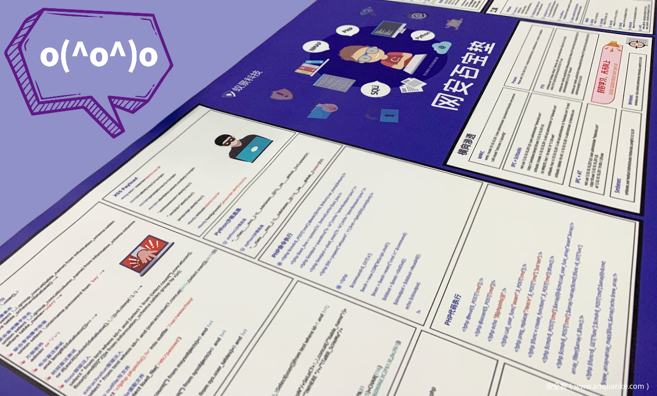我们收集整理了网安人都要涉及的4大方向:Web安全、渗透测试、工具、横向渗透等常用的网安知识代码,这可以保证你在进行这方面的学习/工作时,能快速找到你需要的代码。且印在桌垫上的知识点,能让你随时查看,加速记忆,提高学习及工作效率。