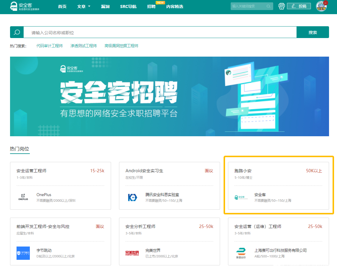 2、热门招聘岗位