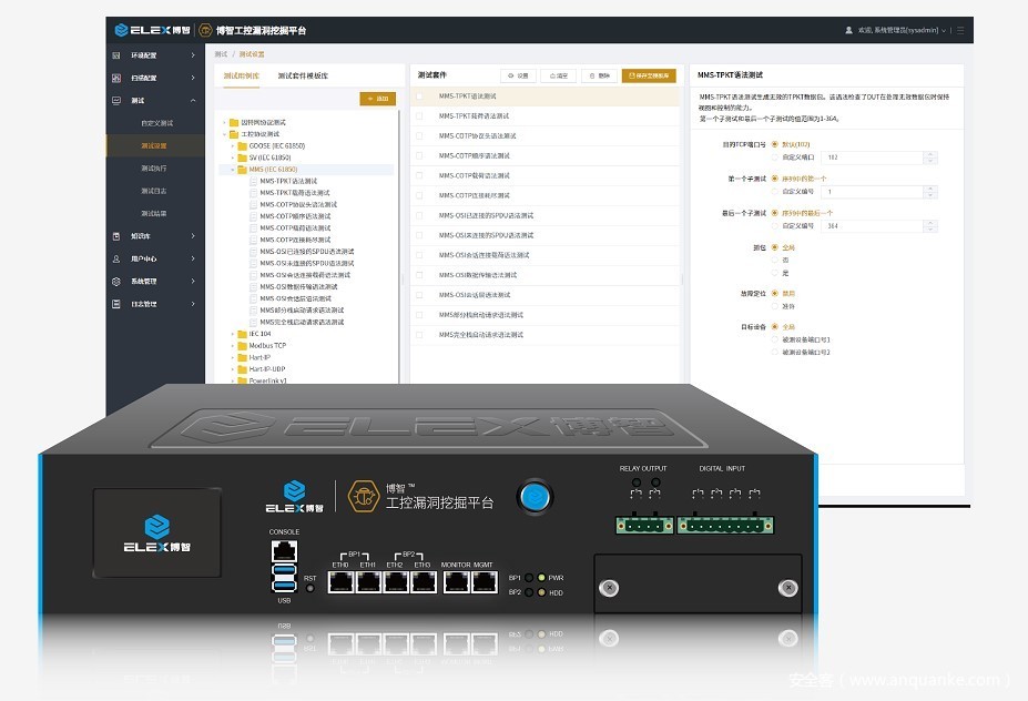 博智工控漏洞挖掘平台是一款采用智能Fuzzing技术,对工控设备(如PLC、RTU)、工控系统(如DCS、SCADA等)、工业操作系统(如VxWorks等)进行未知漏洞挖掘、安全性及协议健壮性测试的评估设备。 能够帮助用户提高工控网络安全等级,提升工控设备厂商产品安全性和竞争力,增强监管单位、测试机构检测能力和权威性。
