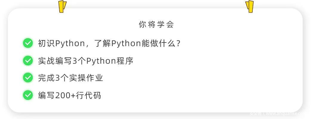 3节直播课 + 1节认知课 + 3次作业实操 +【7×12小时陪伴学习】,带你从0开始写出3个Python程序!