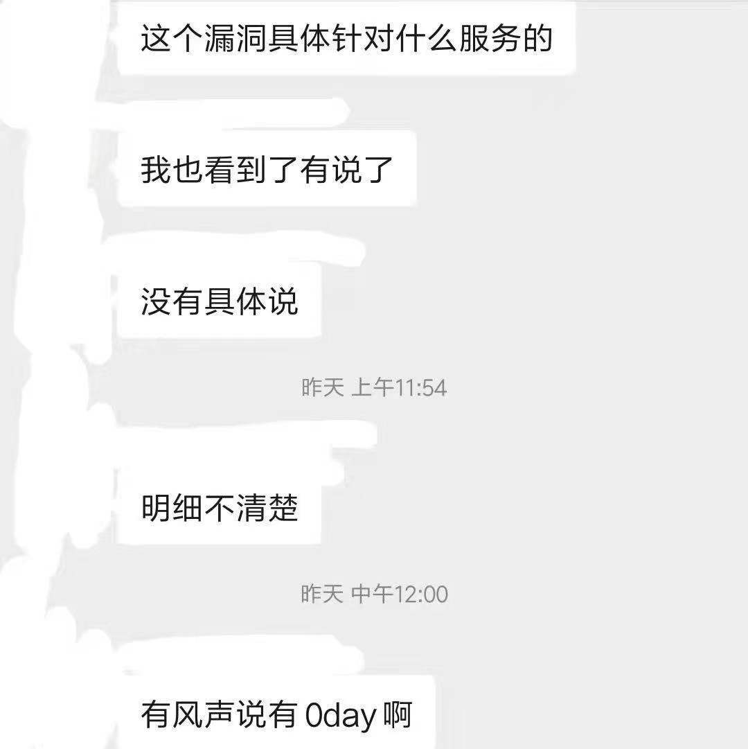而在今天中午,新的0day情报开始在各个安全群中传播。