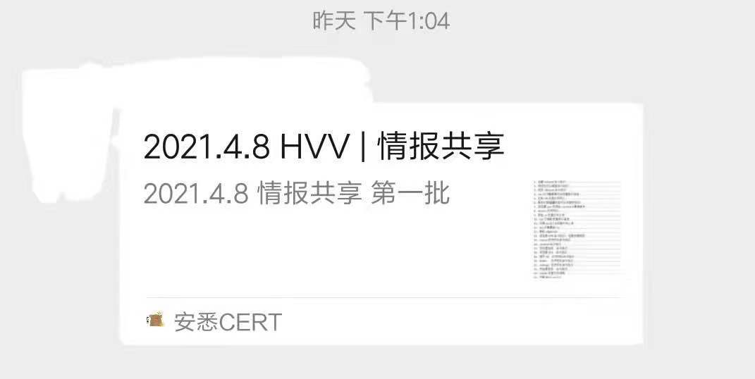 紧接着出现了一篇名为“HVV情报共享”的个人公众号文章,其中“疑似存在漏洞”与“2021XX总结”似乎印证了之前的风声。