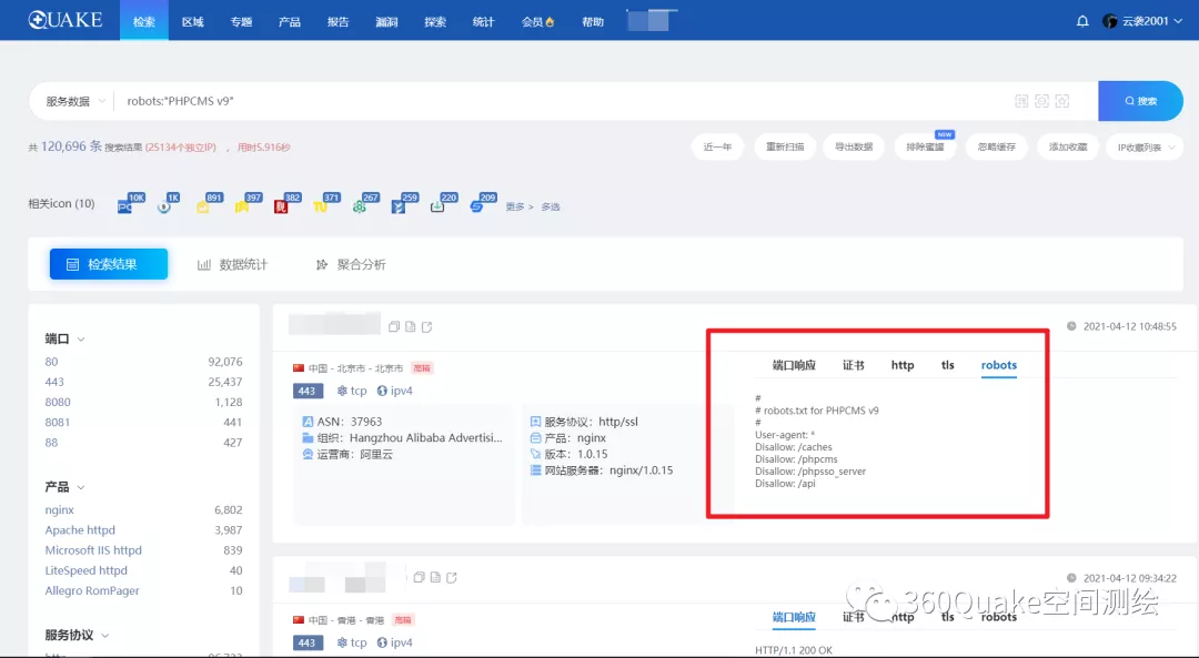 举个栗子,搜索:robots:”PHPCMS v9”