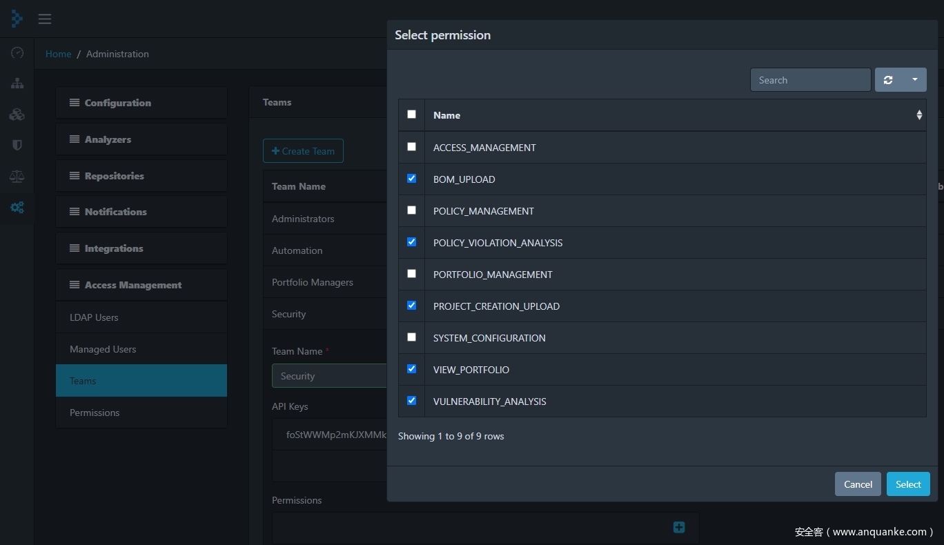 在 Dependency-Track 的图形管理页面中,缺乏一些批量化操作的功能,比如结果导出,批量创建和删除等等。
