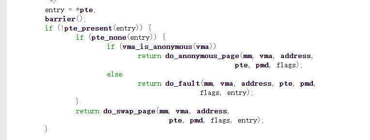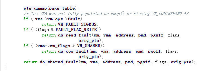 这里因为没有分配实际的物理内存,所以我们会进入上面的if分支中,并且执行do_fault