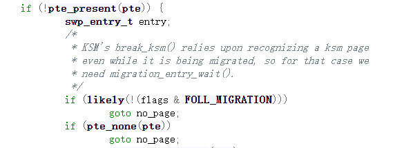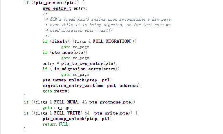 我们回到源码去看看这个0到底是如何返回的。我们直接看最后查找页表项的函数follow_page_pte