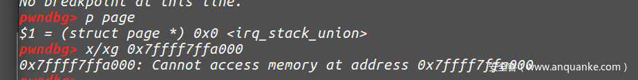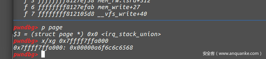我们继续执行第二次follow_page_mask函数的后,可以看到下图我们的物理内存已经分配了,但是我们的page还是0。