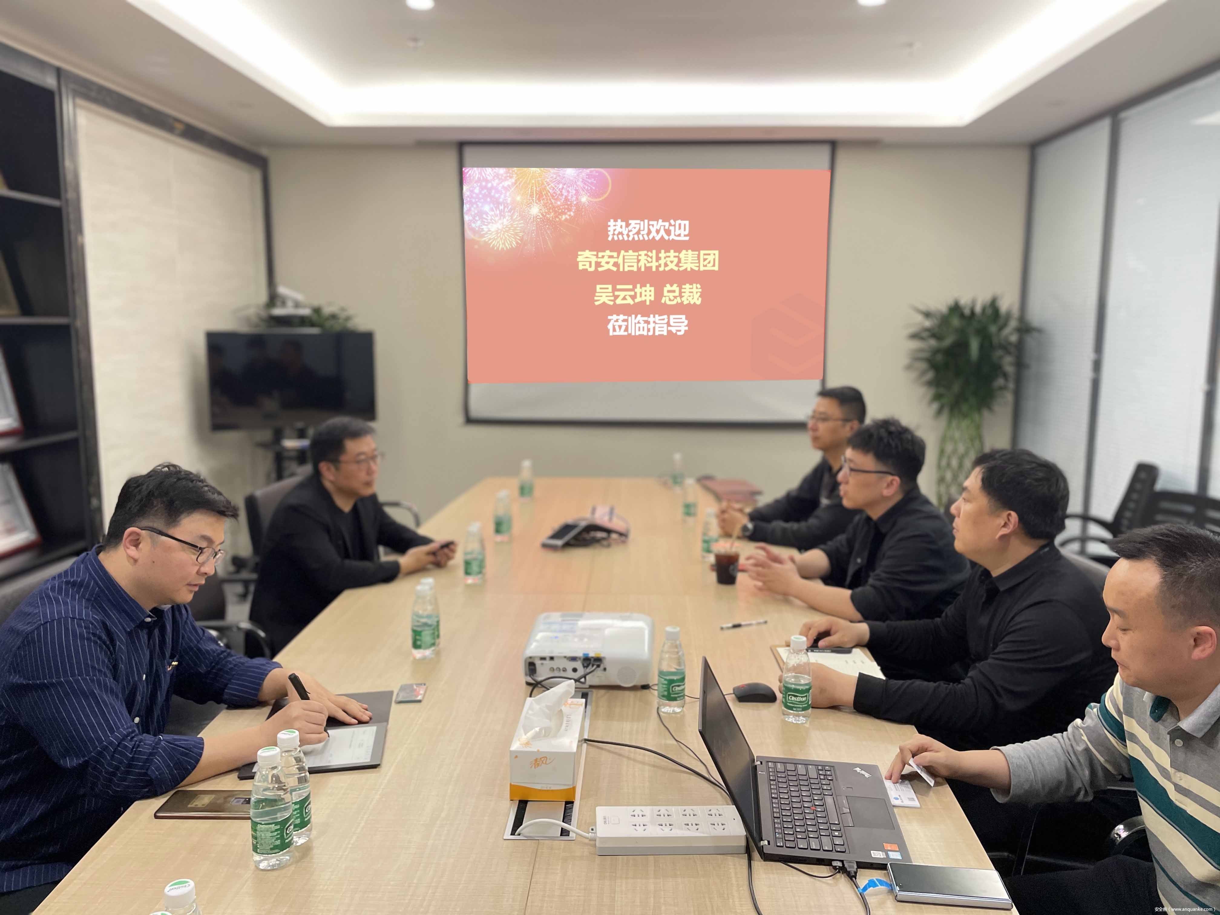 2021年4月28日,奇安信科技集团股份有限公司(以下简称“奇安信”)总裁吴云坤一行来访博智安全科技股份有限公司(以下简称“博智安全”),博智安全董事长傅涛、副总裁朱信群、军工事业部总经理陈志明、 技术研发总监王力、技术总工程师胡志锋等领导参与接待。