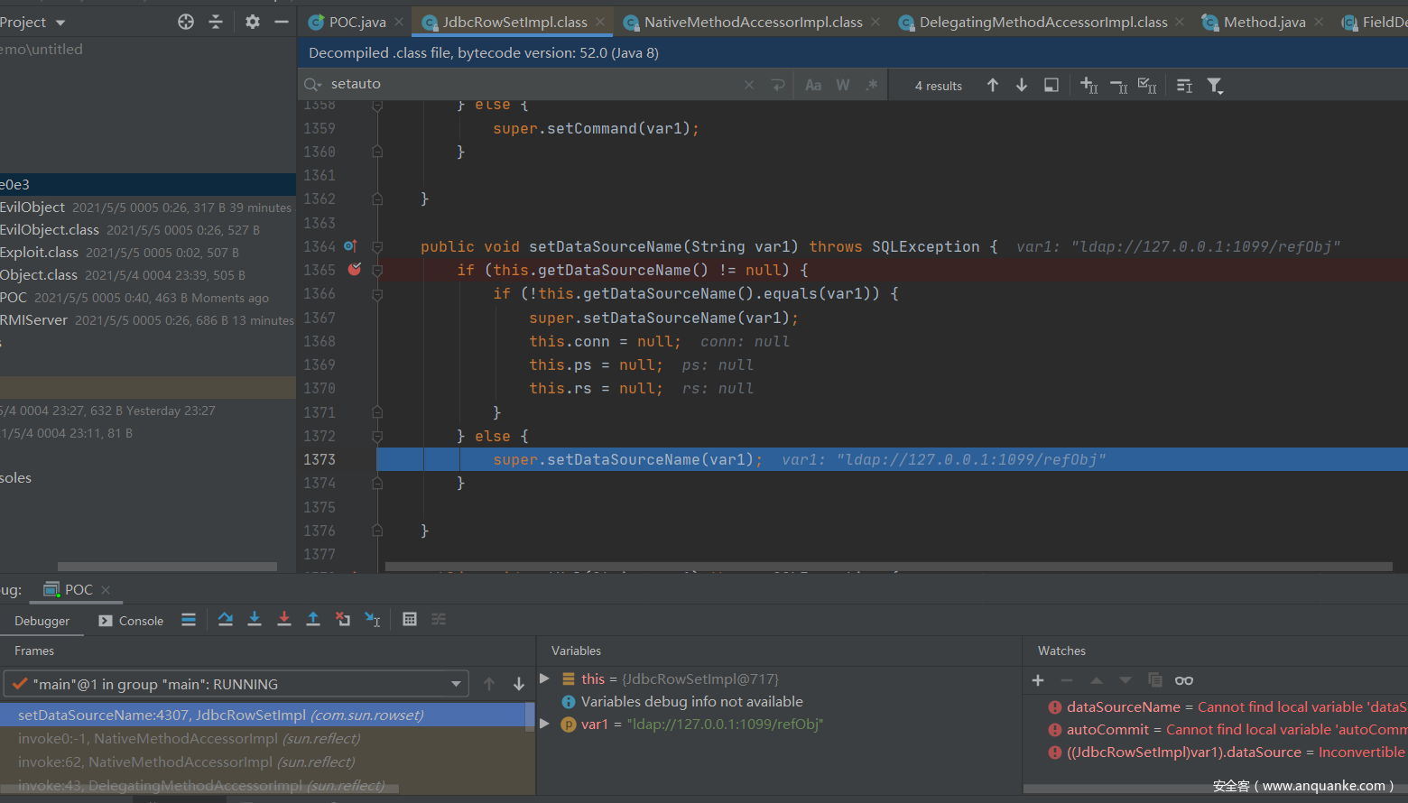 看到payload中的dataSourceName参数在解析时候则会调用setDataSourceName对DataSourceNamece变量进行赋值,来看到代码