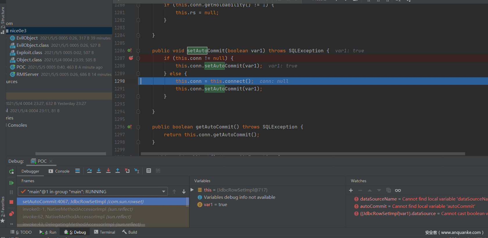 - autoCommit:在Fastjson JdbcRowSetImpl链中反序列化时,会去调用setAutoCommit方法。