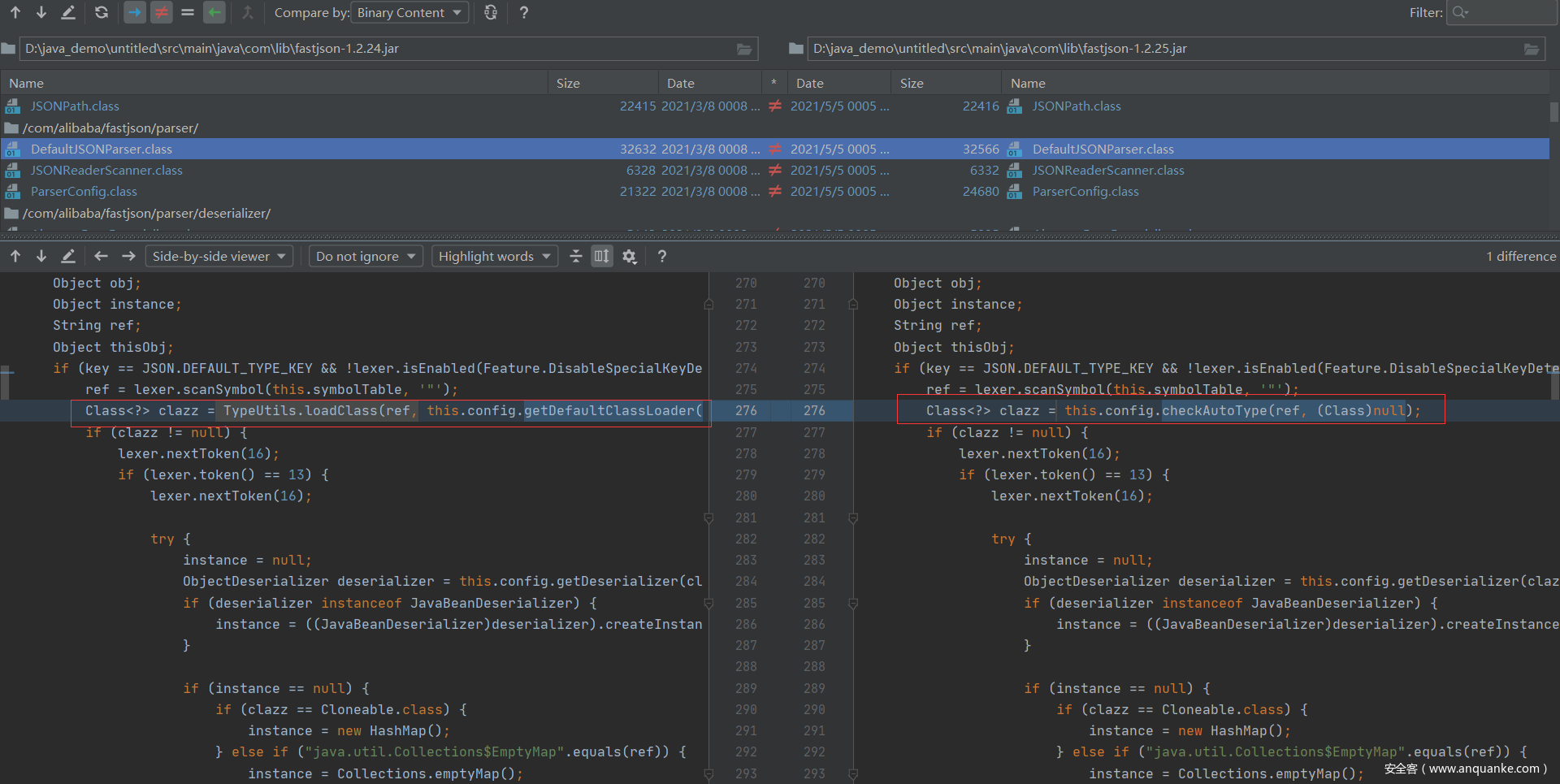 可以看到DefaultJSONParser发送了变动,在这里多了一个checkAutoType方法去做校验。