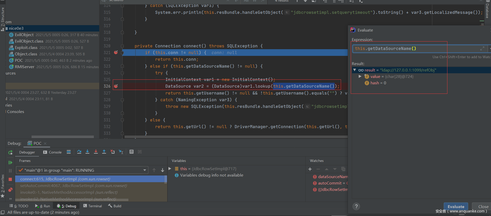 续上文的Fastjson TemplatesImpl链分析,接着来学习JdbcRowSetImpl 利用链,JdbcRowSetImpl的利用链在实际运用中较为广泛,这个链基本没啥限制条件,只需要Json.parse(input)即可进行命令执行。