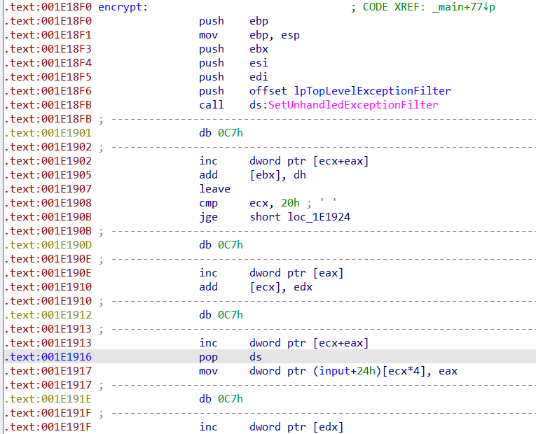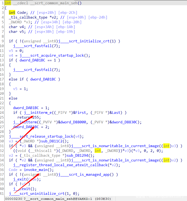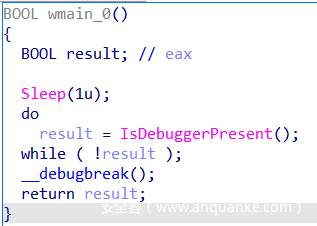 可以发现__debugbreak(),说明这里也有int 3指令。查看汇编。