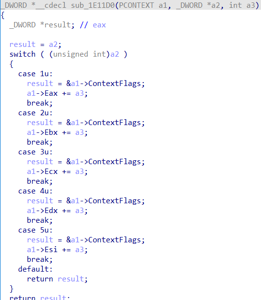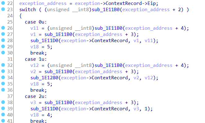 这里要注意,当int 3触发异常后,context中的eip已经指向了一下条指令,也就是addr(int 3) + 1。