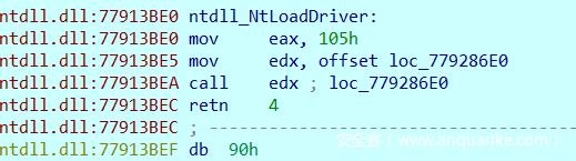 而整个过程中对input进行操作的地方只有ZwLoadDriver函数,但这个函数用于加载驱动,显然不是一个加密函数,但查看最后check时res的数组,可以发现有很多不可打印字符,肯定还是对输入进行加密了,那么猜测系统调用ZwLoadDriver函数应该被hook了,实际运行时执行的是别的加密函数。