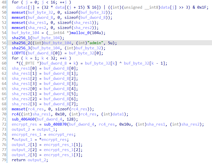 则这里就是将字符串adminsha256加密后进行异或处理,得到一组固定数据。分为两组,每十六个字节分别转储。