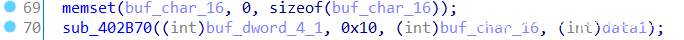 继续分析。这里分配16个字节空间,之后调用函数sub_402B70,根据参数,猜测这里是依据我们的输入生成的data1数据,以及前面sha256加密异或处理后的前16个字节,生成16个字节数据。
